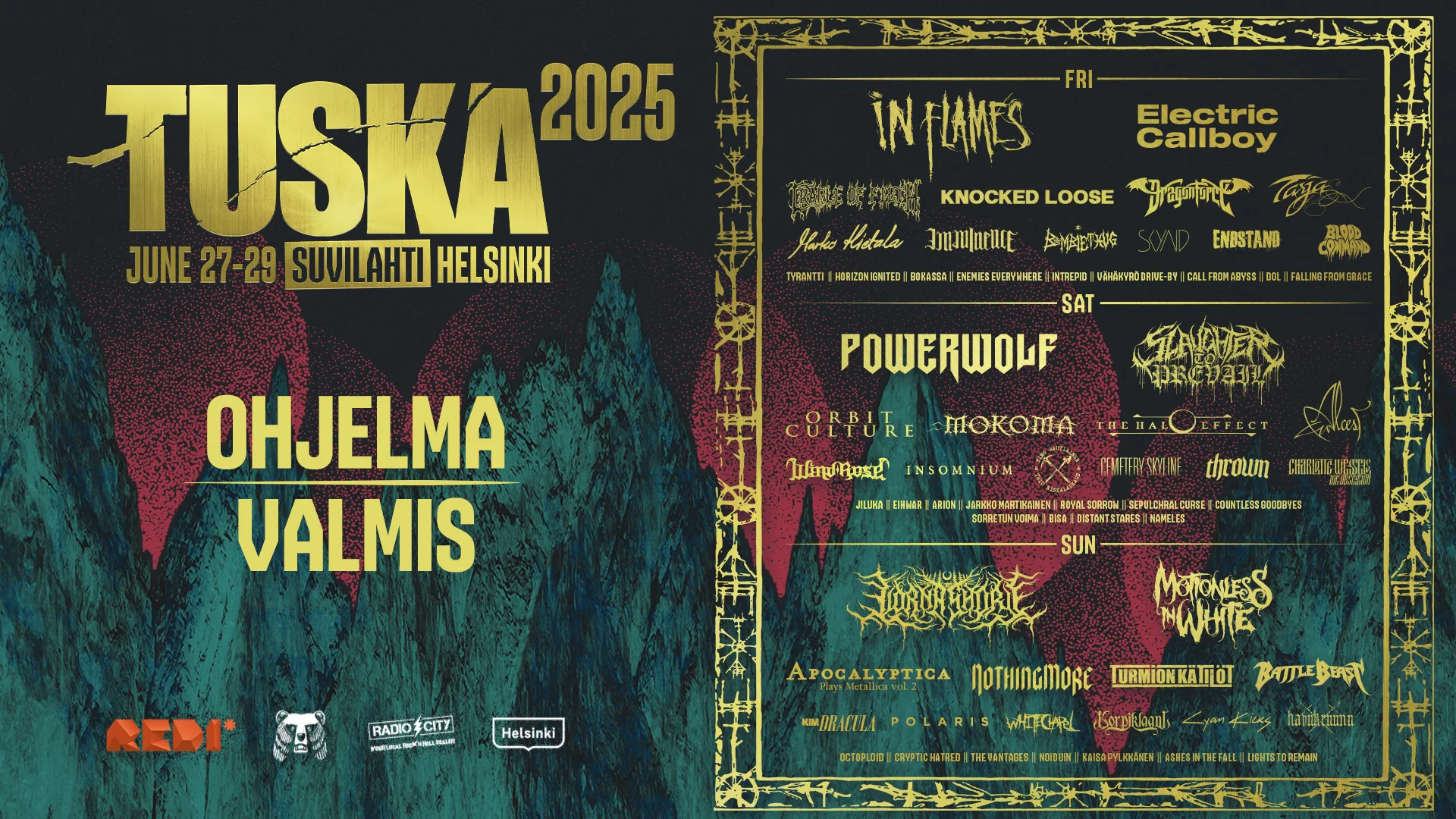Helsingin Suvilahdessa 27.-29. kesäkuuta juhlittava Tuska 2025 on julkistanut roppakaupalla monipuolista, niin kansainvälistä kuin kotimaista tummanpuhuvaa ohjelmistoa. Tuska 2025 ohjelma on nyt valmis.