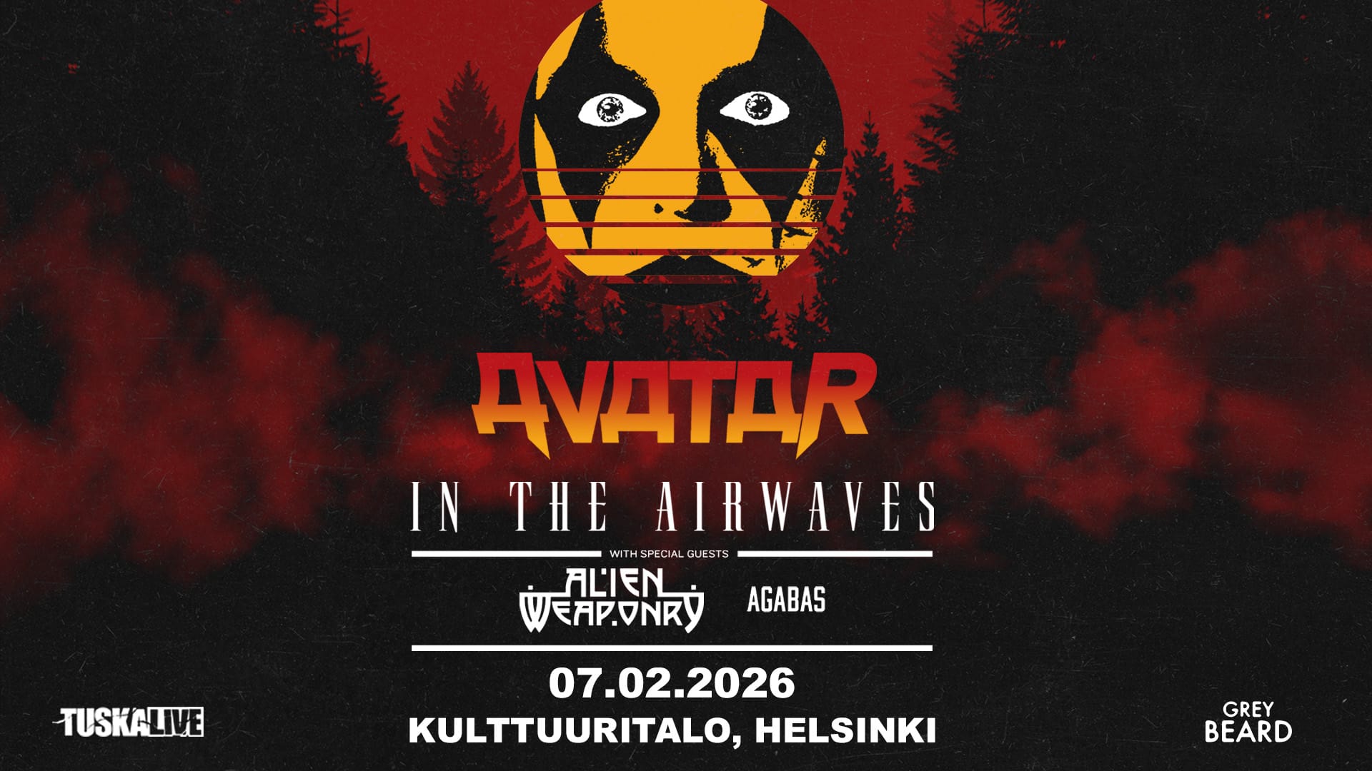 Ruotsalainen, monisyistä metalllia tahkoava Avatar saapuu helmikuun 7. päivä Helsingin Kulttuuritalolle. Keikan erikoisvieraina nähdään maori-metallin suurnimi, uusiseelantilainen Alien Weaponry sekä norjalainen Agabas.