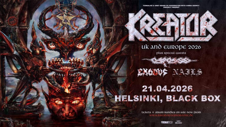 Vanhan liiton thrash – ja death metallin ystäville on luvassa ns. makeaa mahan täydeltä, kun Kreator, Carcass, Exodus ja Nails paaluttavat Helsingin jäähallin Black Boxissa ”Krushers Of The World”-kiertueensa Suomen etapilla 21. huhtikuuta 2026.