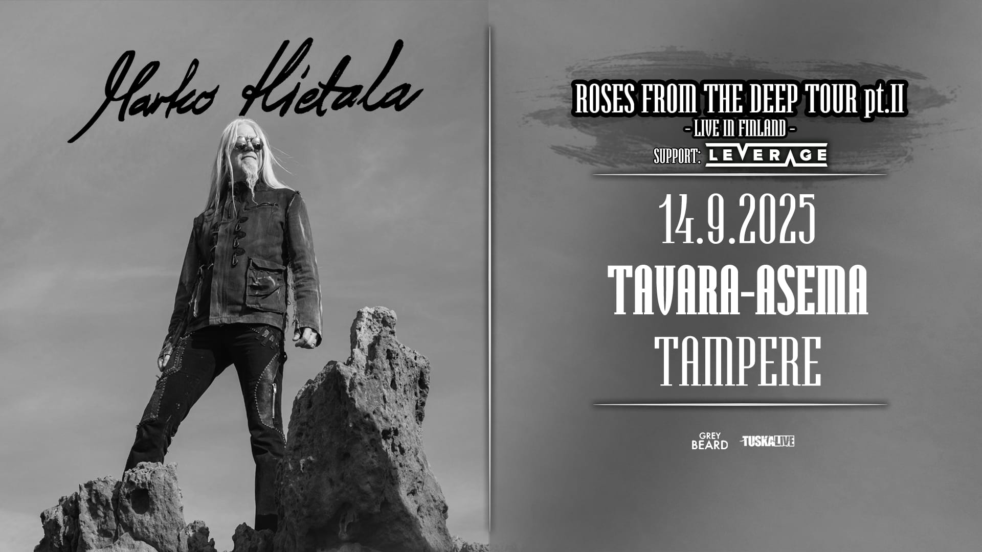 Metallilegenda Marko Hietala palaa keikkalavoille eri puolilla Suomea ”Roses From The Deep – Tour Pt. 2” -kiertueensa myötä. Kriitikoiden ylistämä ”Roses From The Deep” -albumi on saanut kiitosta tunteikkaasta ilmaisustaan ja vahvasta musiikillisesta otteestaan, ja se jatkaa fanien hurmaamista ympäri maailman. Tulevalla kiertueella tullaan kuulemaan sekä uutta materiaalia että fanien kestosuosikkeja.